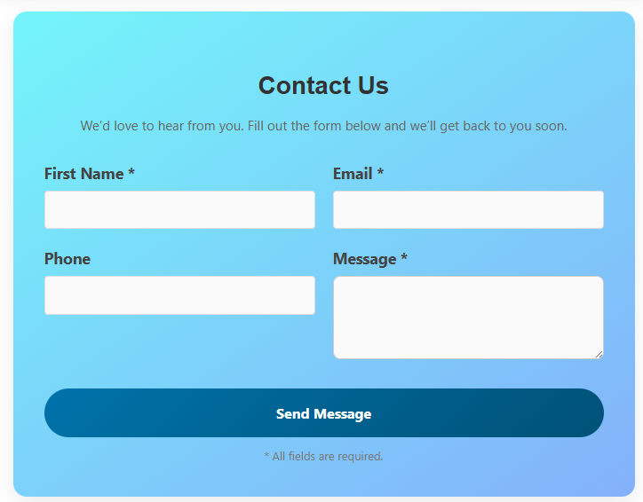 • Built-in spam filtering (honeypot + optional captcha integration).