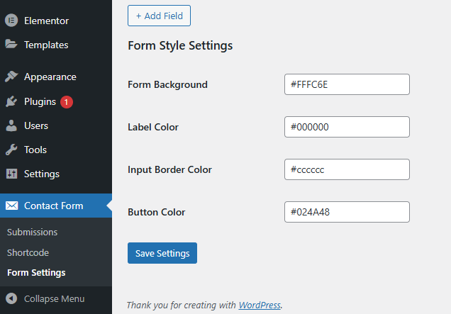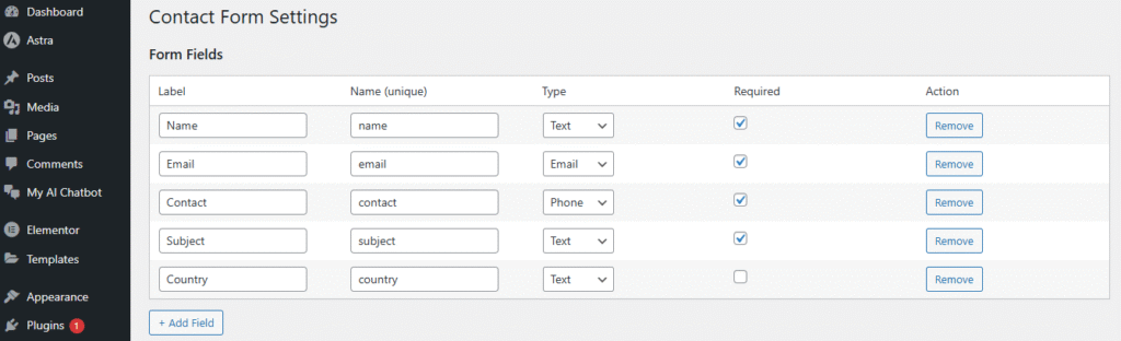 • For Customize the contact form, Go to contact form setting page in wordpress dashboard. you can create new fields for contact form and customize it according to your need.