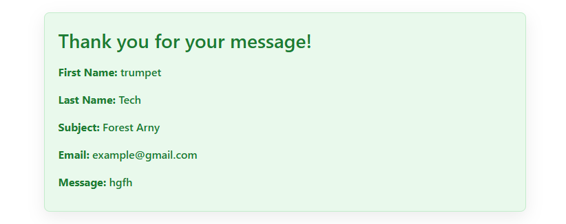 In contact form, when you submit your data, you will get message success box that indicate your data is successfully sumitted in database as well as submission folder in wordpress dashboard.